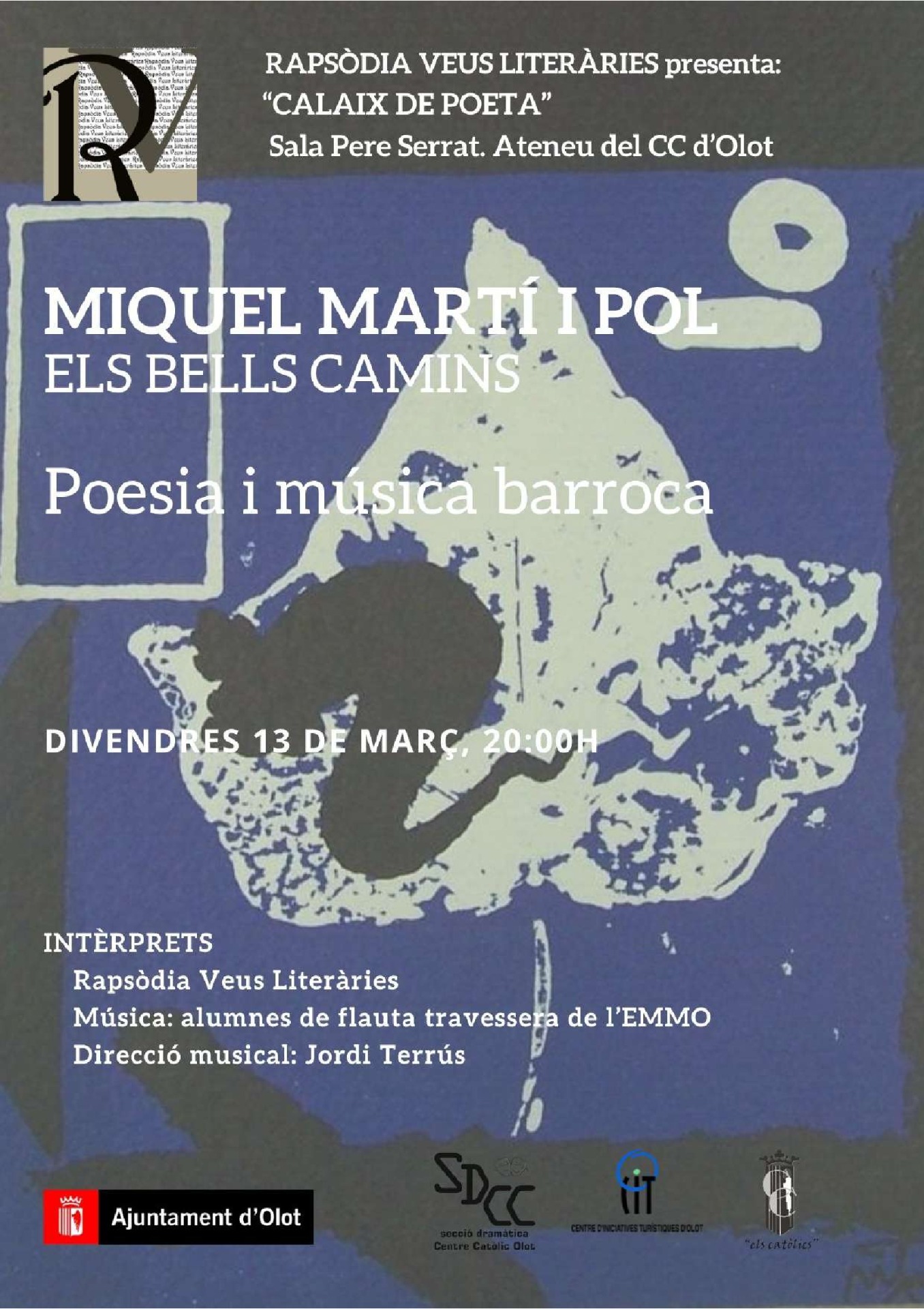 D'aquesta manera els viaranys escabrosos esdevenen més transitables. Com que massa sovint ens veiem caminant sols, continuem amb les col·laboracions amb l'EMMO, aquest cop amb Martí i Pol de company d'honor, perquè creiem que paga més la pena -i l'alegria- fer tots els camins plegats